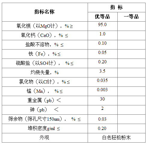 2、物化性質(zhì):白色無定型粉末。無臭、無味、無毒。相對(duì)密度約為3.58(25℃)。熔點(diǎn)2852℃,沸點(diǎn)3600℃。難溶于水,不溶于醇,溶于酸或銨鹽溶液中。經(jīng)1000℃以是高溫灼燒,可轉(zhuǎn)化為晶體。溫度升高到1500℃以上時(shí),則成輕燒氧化鎂或燒結(jié)氧化鎂。吸收空氣中的二氧化碳生成堿式碳酸鎂。